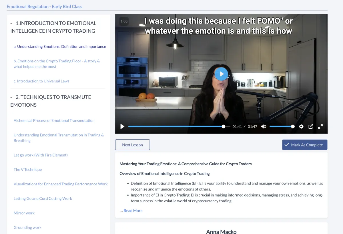 Anna Macko's coaching program will teach you how to achieve mental clarity and inner peace while making informed, strategic trading decisions. This is your gateway to mastering both the market and your mindset.